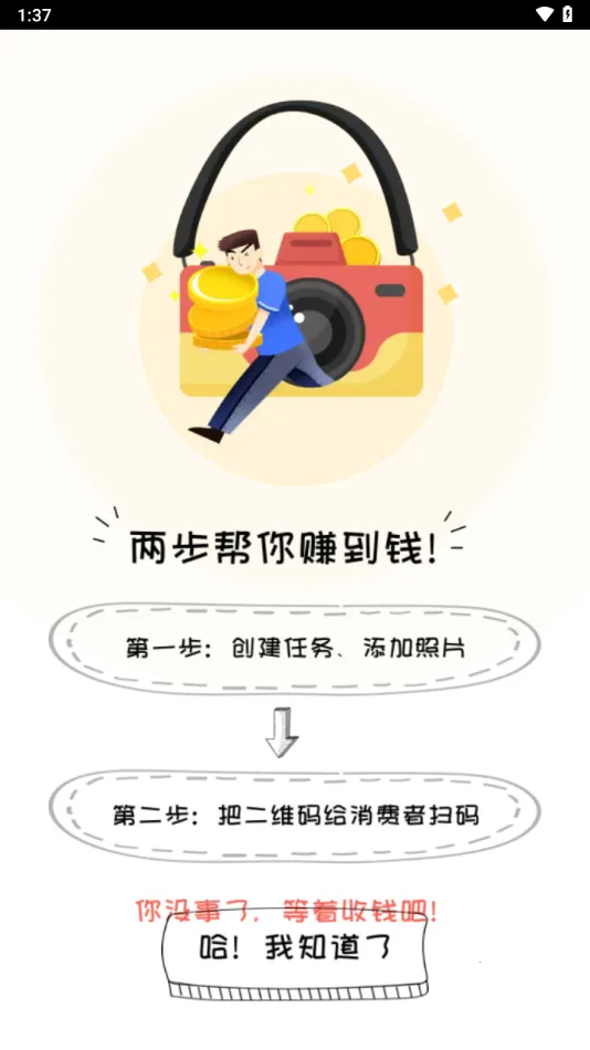 折返摄影app是广州本易互联网科技有限公司推出的摄影摄像类软件。摄影师可创建任务、上传照片生成二维码,客户扫码购图后摄影师即时收款。它还提供海量兼职信息,支持线上面试,兼职按天或小时结算,薪资高且审核严格。