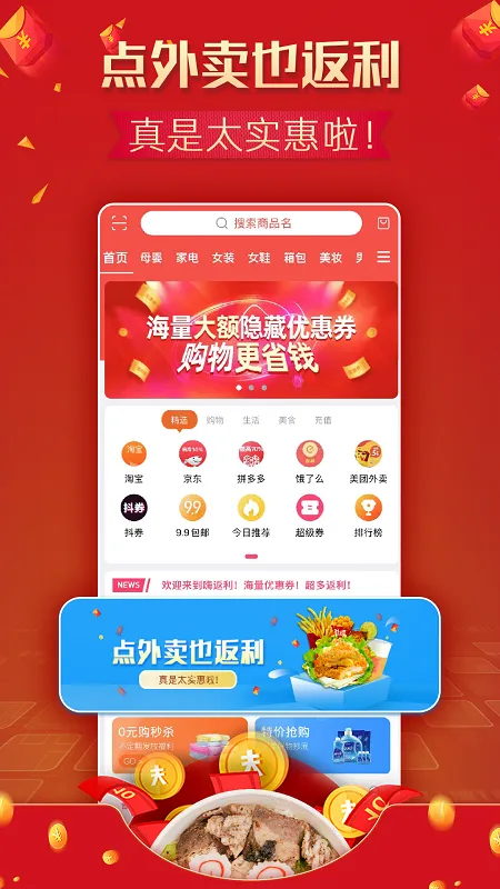 2、引入淘宝天猫等购物平台,购物可获取更多返利与优惠。