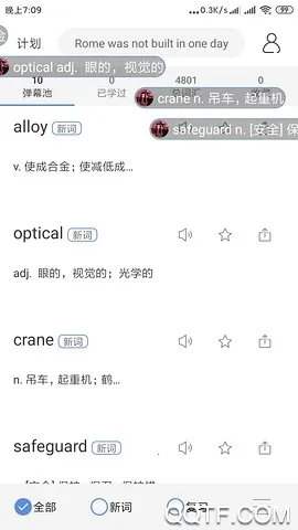 1、弹幕记词:边玩边学,让单词不知不觉被记住。