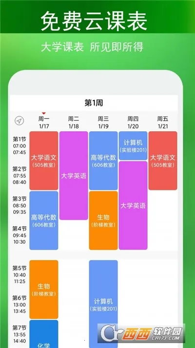 1. 用户可将自己的课程表导入其中,方便随时查看课程。