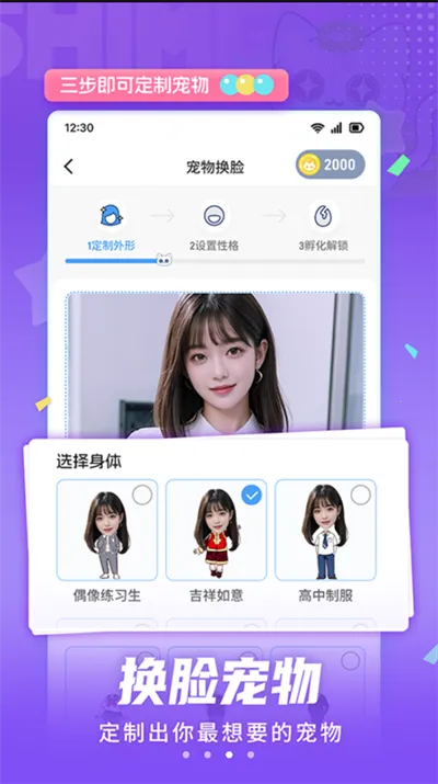 3、个性化定制:支持上传自己的照片定制个性宠物,还能对宠物外观进行自定义,如更换服装、配饰、发型等,打造独一无二的专属伙伴。