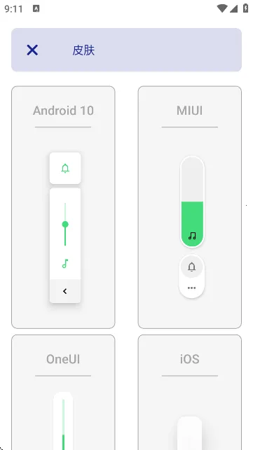 2、支持自由更改音量条颜色,应用不同主题风格,像iOS、MIUI等,还能调整位置及布局,随心所欲打造个性化界面。