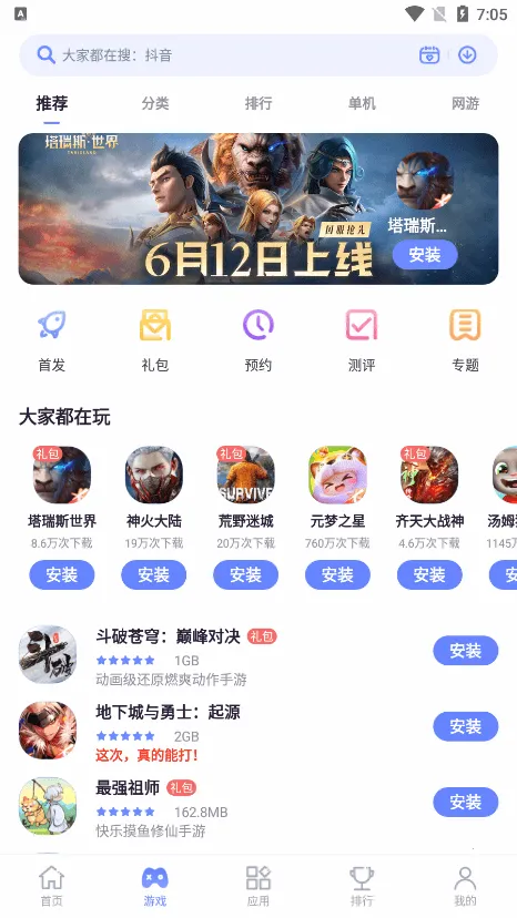 2. 智能推荐系统:依据用户游戏喜好与下载记录,智能推送热门游戏与精品应用。
