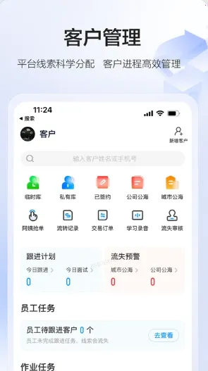 客户管理平台可精准分配客户,通过高效内外部流转策略保证线索价值最大化,还有标准化作业流程辅助商家经营管理。