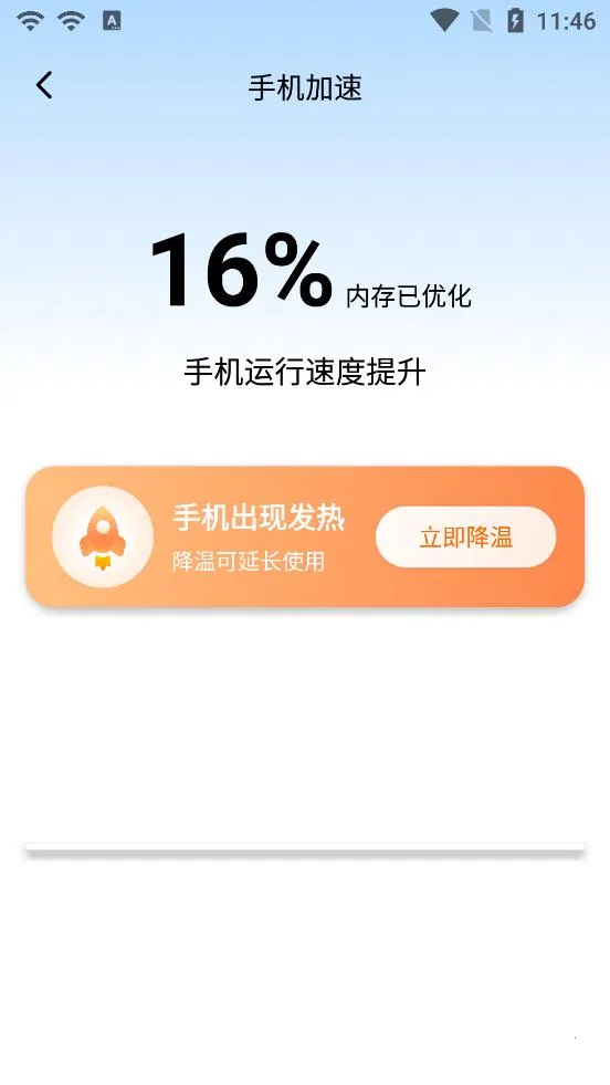 1. 一键加速:可解决手机发热卡顿耗电快等问题,操作轻松简单,还能加速手机,释放更多内存,让手机平稳运行不卡顿。