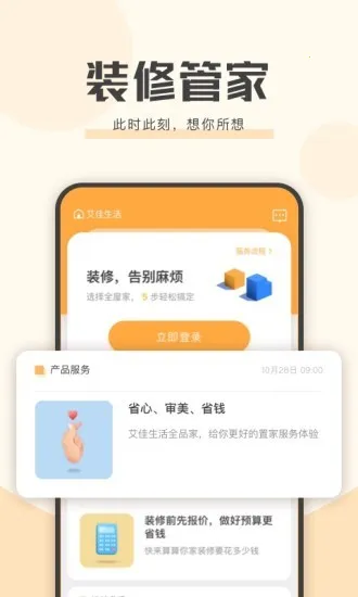艾佳生活是专注家居装修的综合性服务平台,有免费设计、多种装修风格与套系可自由组合,提供1:1实景样板间、海量灵感案例,支持在线选购家具及免费送货上门等,还有退定金、删方案、投诉等功能指引。