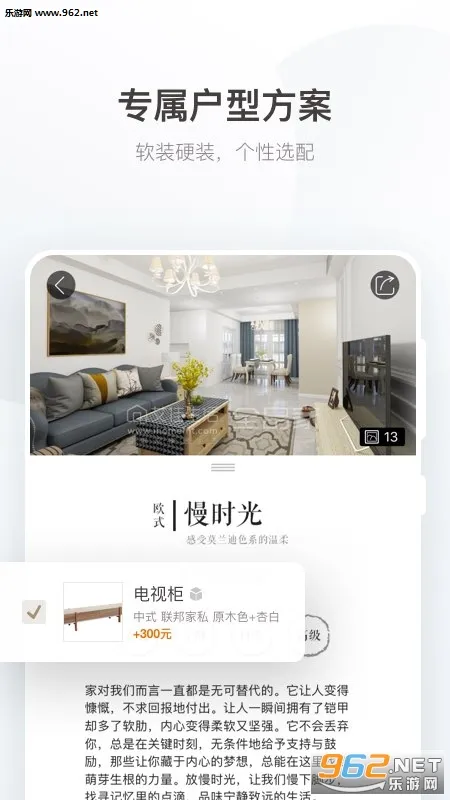 1. 提供多风格装修方案:有中式、欧式、美式、现代四大装修风格,每个系列又分四种装修套系,风格与套系可自由组合,为用户带来多种家居全新体验。