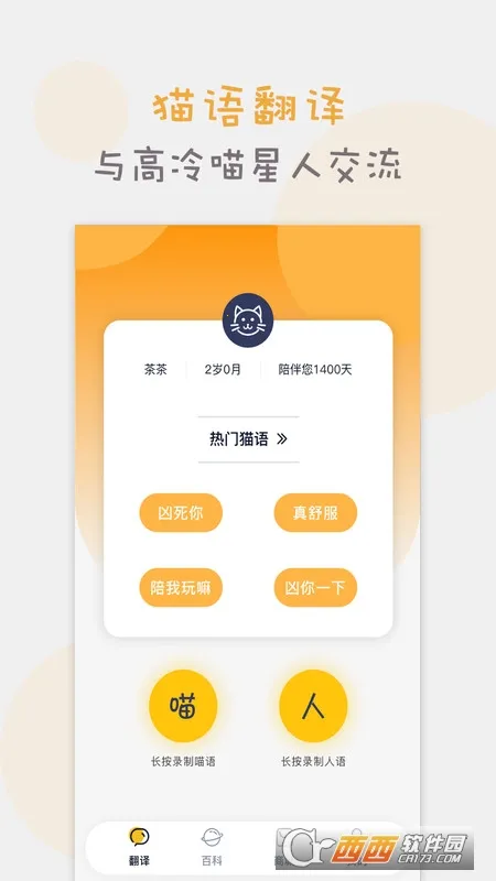 1、人猫互译:一键翻译,帮助你与高冷的喵星人交流,不仅能把主人声音变换为猫语,还能将猫语翻译成人语,让沟通更顺畅亲密。