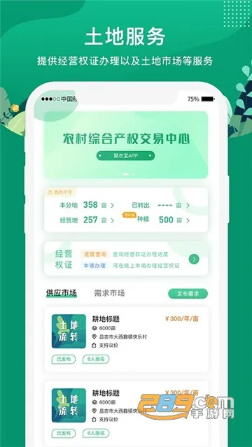 2、该软件支持土地使用权流转,提供种子采购、农资采购等一站式服务,用户还能便捷办理经营权证和各类农事农资。