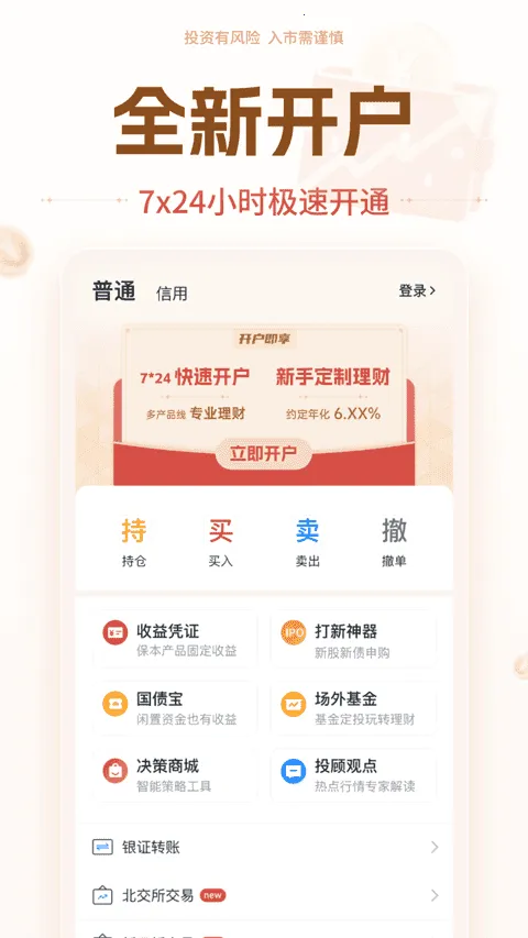 2、开户交易一站式,从首次开户到首笔委托,全部在单一App内闭环完成。