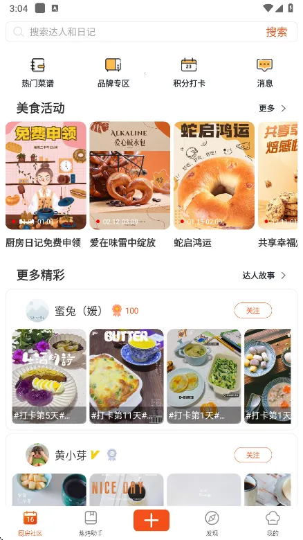 3. 拥有达人互动社区,汇聚3000美食达人,支持菜谱分享、烹饪技巧交流及作品展示,形成活跃的厨房社交圈,还有趣味活动与直播课程,定期举办创意厨房活动如烘焙比赛和免费直播教学,提升用户参与感。
