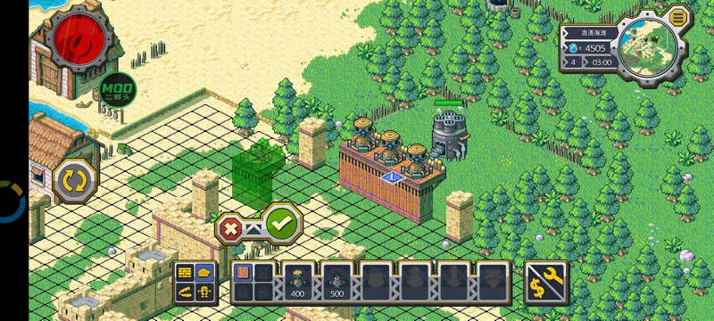 2. 游戏中可拖动围墙放置在指定地点,放错能点击右下方按钮售卖,还能点击左方按钮旋转围墙。