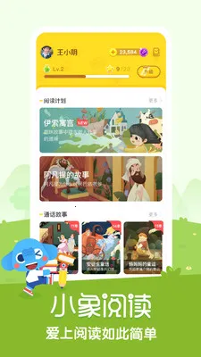 小象阅读是北京作业盒子科技有限公司为4-12岁儿童打造的掌上课外阅读软件。有超600篇有声故事,涵盖多种题材,均配真人朗读及课后练习。还有微信课程、思维导图等功能,以游戏化方式带孩子进入名著闯关世界,助其开拓视野、培养阅读兴趣。