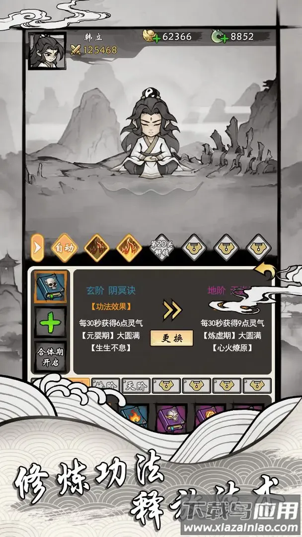 1、玩家可自由选择开挂方式,影响修炼速度与法宝法术解锁,打造独特修仙体验。