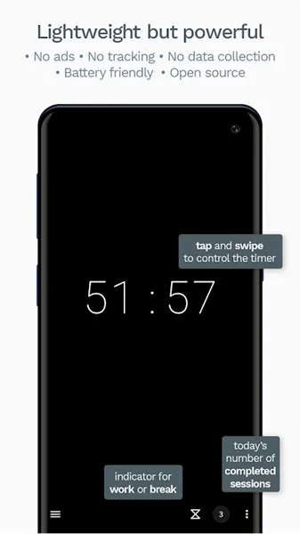 3. 智能提醒与通知系统:支持声音、振动、屏幕闪烁及闪光灯提醒,锁屏界面显示剩余时间,持久通知栏确保用户不会遗漏休息或工作切换。