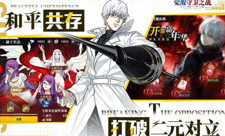觉醒守卫之战2026官方最新版本是基于东京食尸鬼改编的高燃3D战斗喰种题材手游。玩家化身喰种或搜查官,集结经典伙伴,以放置回合制战斗,穿梭都市街巷探寻真相。福利丰厚,还有原动漫名场面重现、多特色玩法等,等你来战。