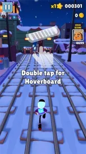 5、双击屏幕可以使用道具滑板,它可以帮助你提高得分,并且撞击还会为你清除障碍,但是滑板会消失;