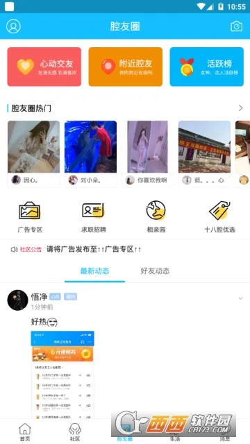 腔友圈是一款超棒的本地生活服务软件,特别适合想用义乌话交流本地生活的朋友们。它能满足多种需求,让生活超便利。在这软件里,你既能轻松获取本地热点资讯,又能参与各种热点话题讨论,和大家一起交流义乌的新鲜事儿。它集成了众多便捷生活服务,比如查询公交、车辆违章、天气等,还能分享美食、爆料八卦。你可以随时发布生活动态,和网友共享快乐。这里有完善的社区功能,能发布吃喝玩乐等生活信息,在评论中就能轻松交到朋友。它还是个自由免费的分类信息平台,能让更多人知道你发布的内容。用它就像拥有了一个专属的义乌生活交流圈,不管是了解本地情况,还是找同城交友活动,都特别方便,真的超实用!
