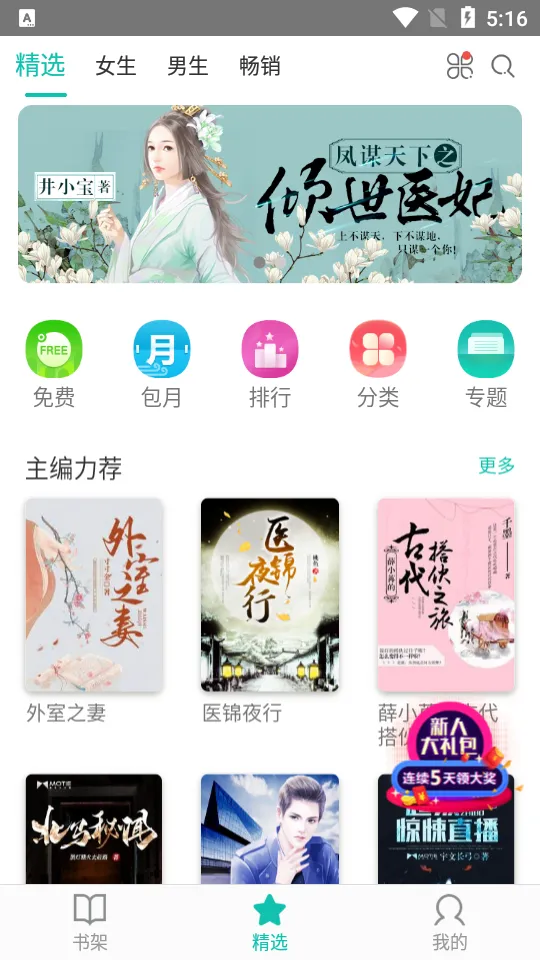 2、设有独立频道,男生原创作品、女生原创作品、出版书籍独立呈现,带来独立体验。