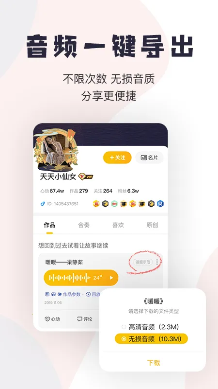 唱鸭app是一款很特别的音乐演唱应用。它能解决不懂乐器却想自弹自唱的问题,让你轻松实现弹唱梦想。这里有多种乐器选择,像钢琴、吉他、尤克里里、琵琶、古筝等,还有丰富音色。软件功能超强大,支持音乐创作,有节拍器和和弦模板助力;直播互动提供多样内容,能加入粉丝团与主播互动;填词创作有实时更新的Beats与伴奏库。导出音频也不难,按步骤操作就能把自己唱的好音频导出来分享或设铃声。制作伴奏同样方便,进入app选好歌曲,在调音界面自定义曲谱、调整和弦,标记位置后点击生成即可。总之,唱鸭app功能丰富,玩法多样,能满足你对音乐弹唱的各种需求,是个很不错的平台哦!