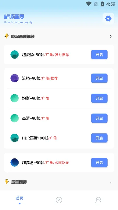 4、优势明显,能优化游戏性能,提供准星辅助,支持自定义画质参数,还能监测网络、快速切换画质以及个性化优化。