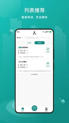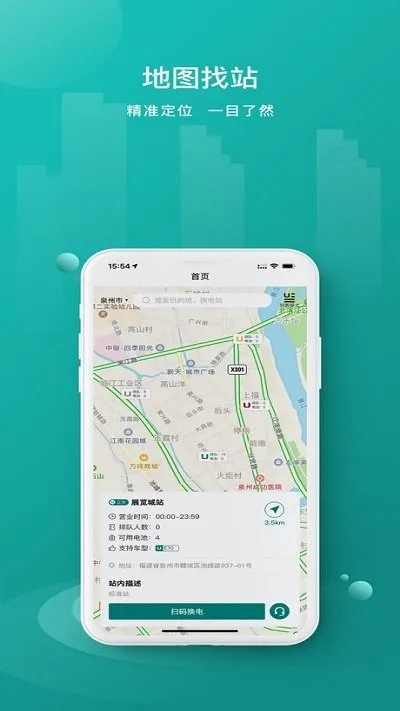 2、软件可助力用户快速查看附近换电站,实时知晓电池剩余电量,实现一键预约无接触换电及结算。