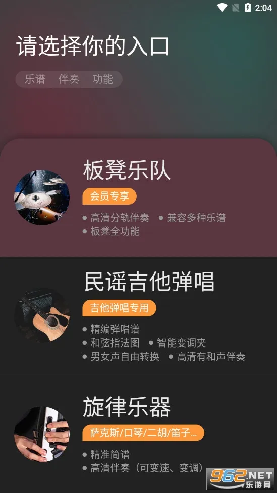 2、乐器种类丰富集合木吉他、电吉他、贝斯、鼓、键盘等五大主流乐器。
