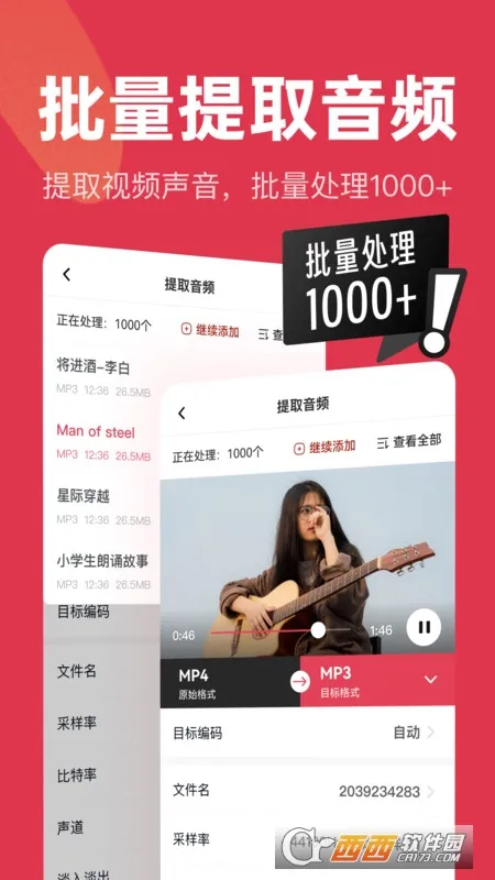 2、功能多样:支持多种音频格式的输入输出与转换,具备裁剪、合并、降噪、变声等功能。