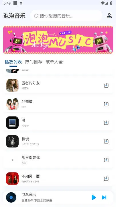 泡泡音乐2025是一款免费音乐软件,无需登录注册无广告。它曲库海量,涵盖多类型歌曲且实时更新,有多种音质可选,能免费畅听下载会员歌曲。还有智能推荐、离线畅听等功能,操作简便,适合各类音乐爱好者 。