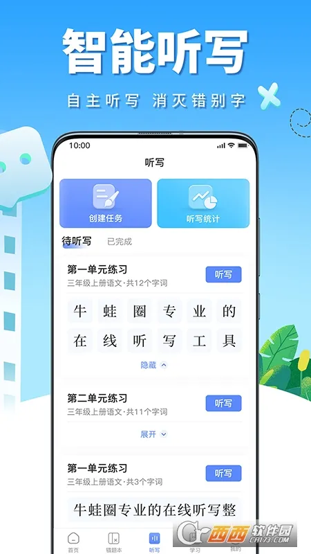 2、具备特色听写功能,可在线创建听写任务,还能对错题反复练习,助力查漏补缺。