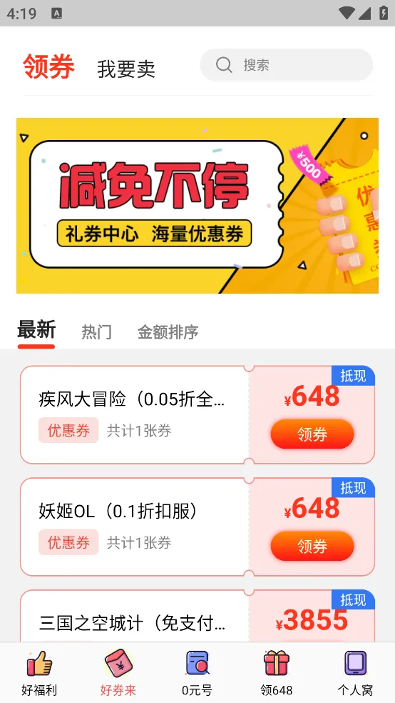 4、福利众多,注册送游戏券,有大量限时礼包,包含武器装备等稀少资源,还有GM手游、0.1折手游等福利号可任意领。