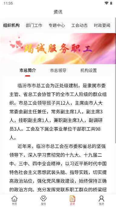 临汾工会最新手机版由临汾市总工会推出,服务职工会员。涵盖网上入会、新闻资讯等多样功能模块,提供便捷服务。可线上找资讯、组织与援助等,修复已知问题,形成互联网工会普惠性服务一体化 。