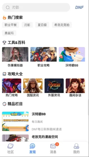 2、丰富内容资源:有全职业百科全书、团本超详细图文攻略、官方视频栏目等,还能获取DNF国服及其他服的一手前瞻资讯。