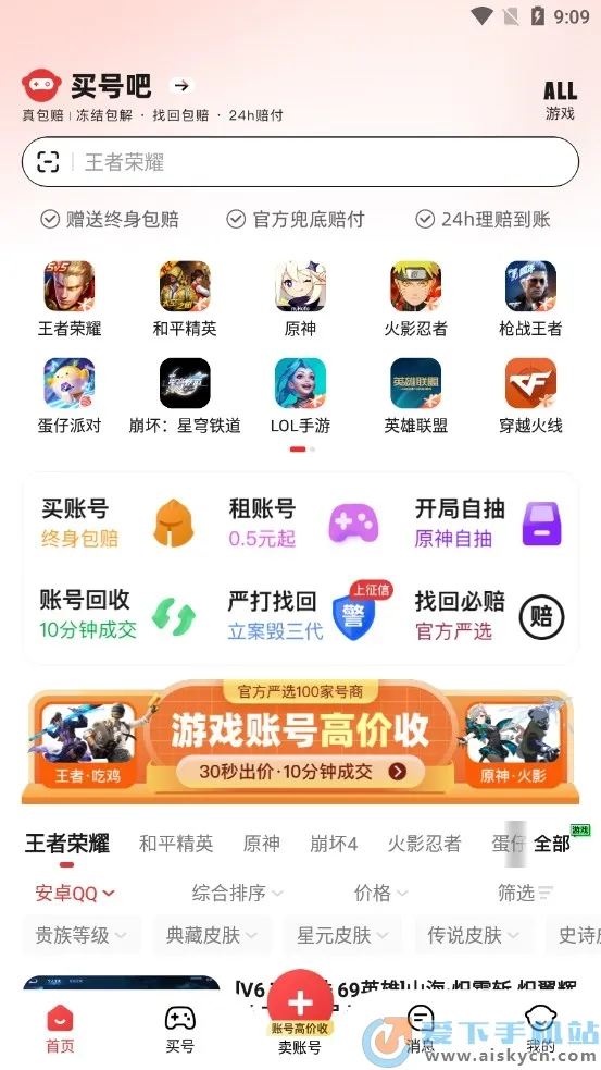 买号吧2025专注游戏账号交易超十年,涵盖王者荣耀等热门手游。提供买卖、回收、出租服务,有永久包赔保障。界面操作简洁,有筛选搜索功能,交易安全便捷,支持多支付方式,满足多样账号需求 。