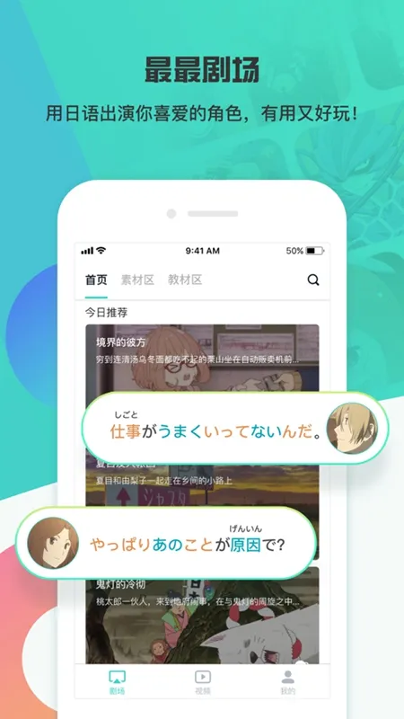 2、学习方式新颖,通过趣味配音练习口语,告别枯燥教材,让学日语更轻松有趣。