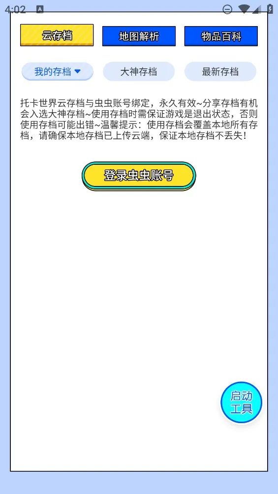 虫虫助手托卡生活世界工具最新手机版,专为托卡生活:世界玩家打造。具备云存档、地图解析、物品百科三大功能,可下载分享存档、定位区域、查找物品信息,发现新内容还能上传,助玩家轻松畅玩托卡世界 。