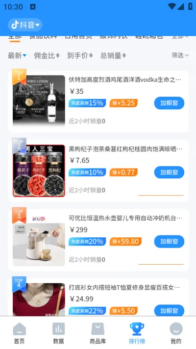 1、商品资源丰富 提供50万抖音快手高佣商品,覆盖多类目,资料全、素材丰富
