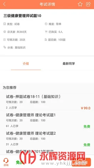 3、具备诸多特色,如有海量在线视频课程、随时随地可在线做题、热门考试咨询及时推送、个人中心功能丰富,还提供免费课程、课程丰富且有优选推荐等。