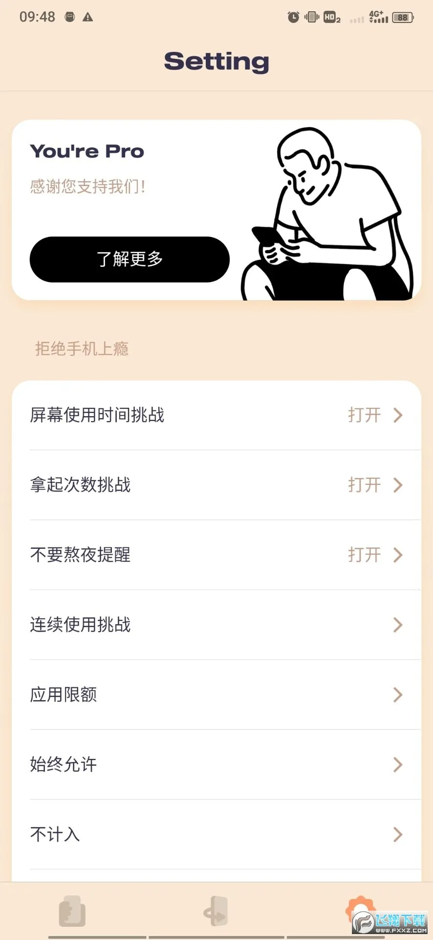 3、使用限额设定:可给应用设置使用限额,超过限额禁止使用,还能限制每日使用时间,通过拒绝手机上瘾挑战等温馨提醒,帮助用户达成目标。