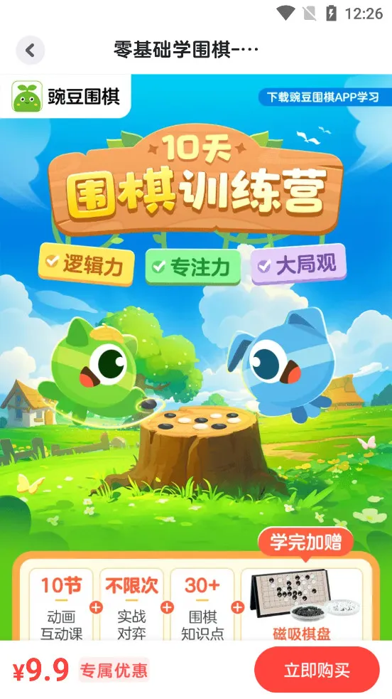 豌豆围棋安卓版由广州六一信息科技有限公司开发,专为4 - 12岁儿童设计。以学围棋练思维为理念,通过AI交互系统、国学典故动画等打造启蒙平台,有多种功能和丰富资源,助力孩子学围棋、提思维 。