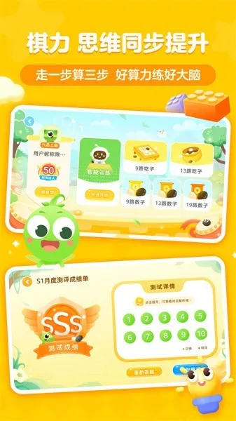 1、专为4-12岁儿童设计,以“学围棋练思维,好算力练好大脑”为理念,提供围棋启蒙。