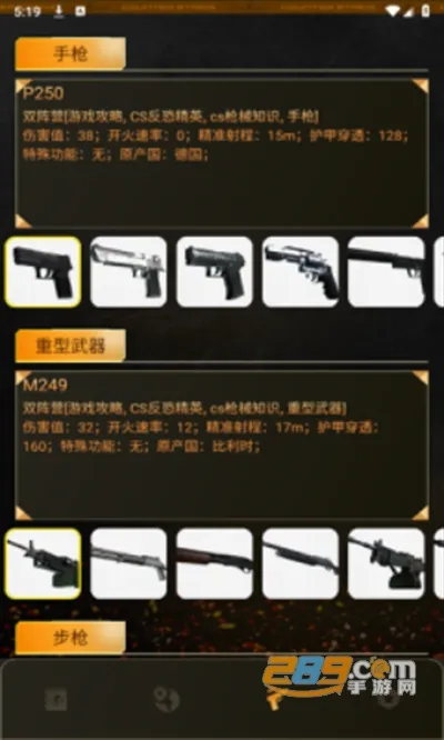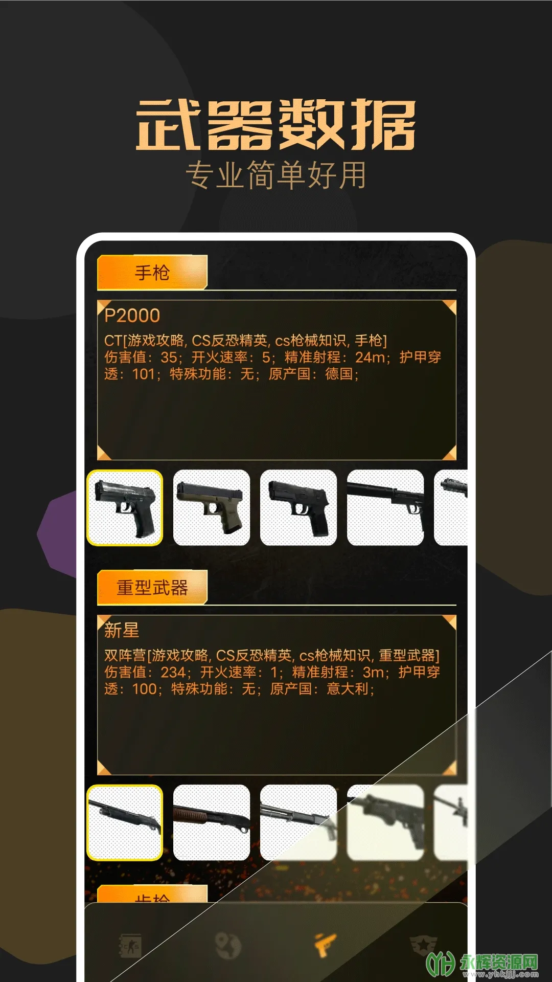 2、提供游戏中所有武器数据,涵盖价格、伤害等,助玩家合理选装备,提升对局胜率。