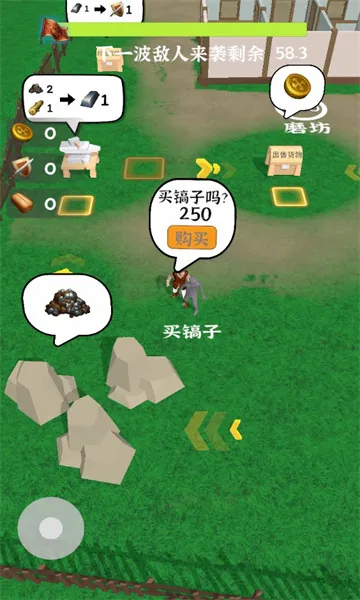 1、角色扮演玩法,玩家扮演勇敢村民,为守护村庄展开行动,拿起斧头和镐子挖掘资源。