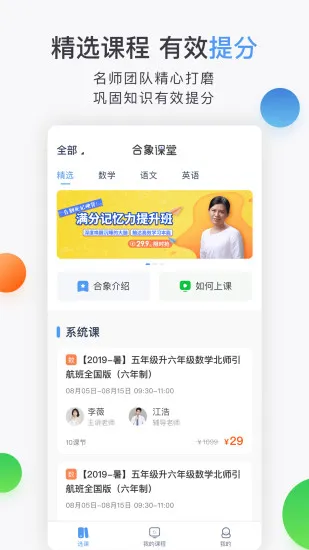 合象课堂是合象教育旗下的在线学习平台,专注中小学名师在线辅导。采用名师直播授课、双师辅导模式,为6 - 18岁学生提供多学科课程。严选优质师资,课程丰富,互动性强,有回放与个性化辅导,助力学生提分 。