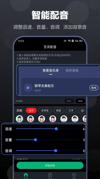 2、情感化配音出色:采用第三代神经网络声学模型,支持情感化配音,可调节语速语调停顿强度等,实现沉浸式效果。