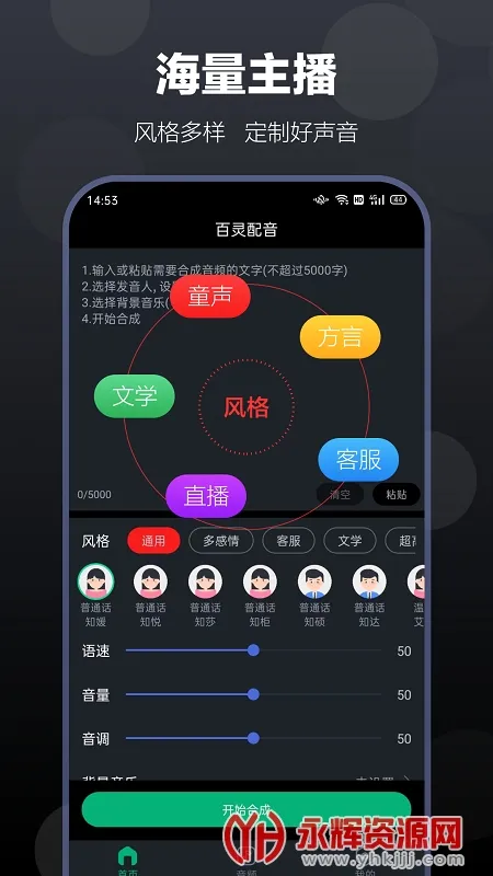 2、资源丰富,涵盖500种语言及方言库,还有大量发音人可供选择。