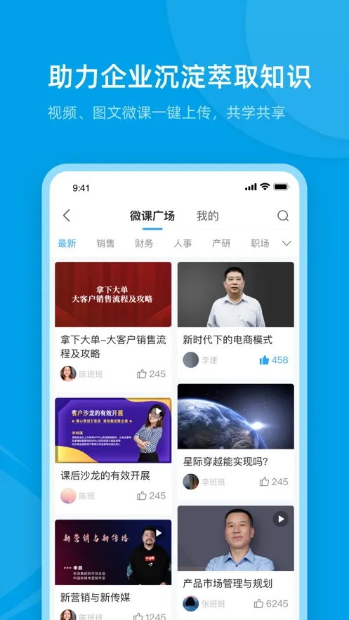 3、功能多样:支持企业HR自主发布内容,具备课后测评、互动交流、课程分享等功能,还有考学联动、在线测评巩固学习成果。