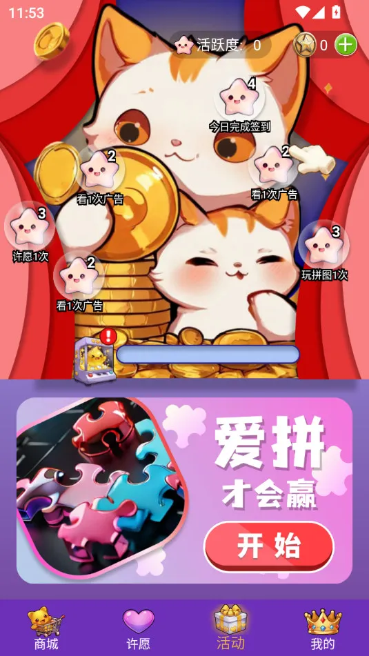 3、获取方式多样:可通过积攒活跃星星、能量等兑换皮肤,还有惊喜盲盒抽奖、许愿奖池抽奖等方式。