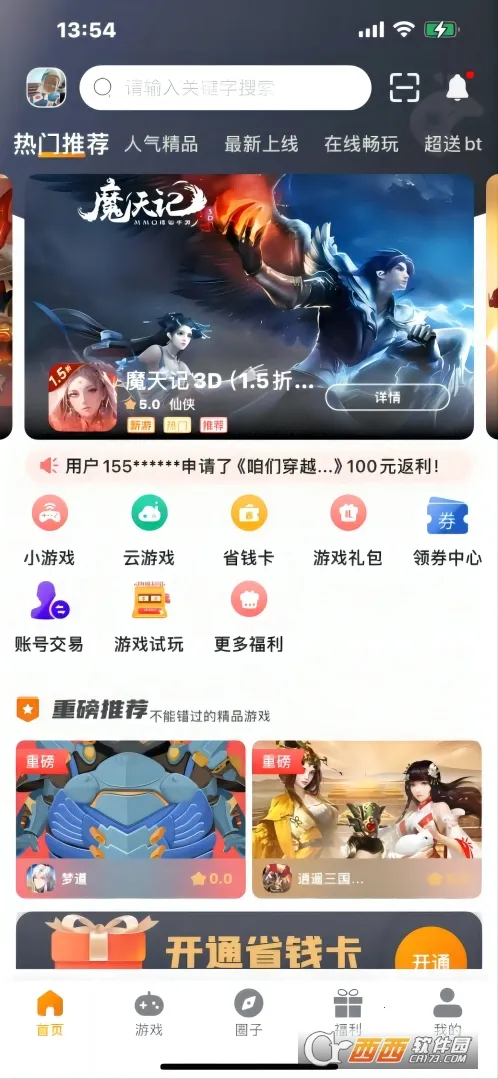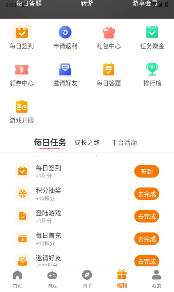 2、福利众多:有超高返利、海量正版游戏、无限元宝钻石、上线送满VIP等,还有签到积分奖励、答题丰厚奖励等。