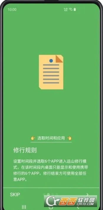 1、可设置时间段与选取应用用户能自行设置时间段,如9:00 - 18:00,并选取6个app进入远山修行模式,该时段内仅能使用选定的6个app。